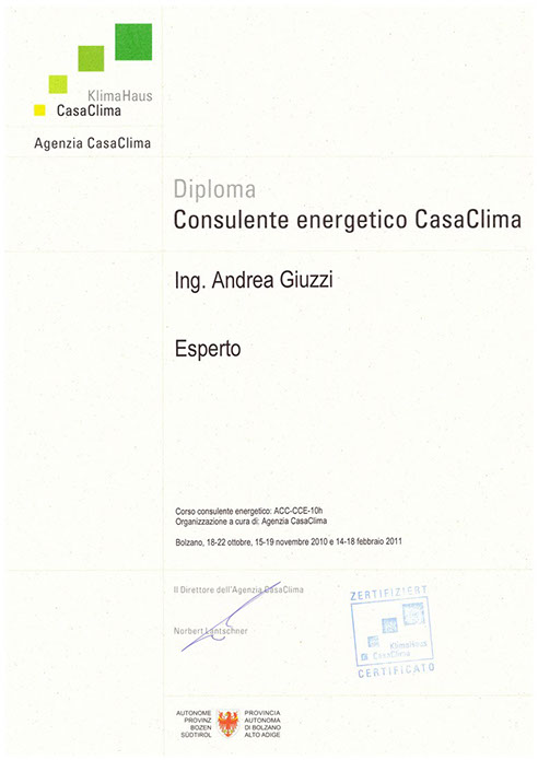 è un marchio internazionale di qualità per edifici costruiti con qualsiasi tipologia edilizia che garantisce l’efficienza energetica ed il comfort termico. Il grado di efficienza si esprime in una valutazione complessiva della progettazione e della costruzione, verificata con controlli ed attestata alla fine dei lavori con il rilascio del certificato energetico. Una certificazione di qualità CasaClima è una garanzia di qualità per l’edificio in quanto: